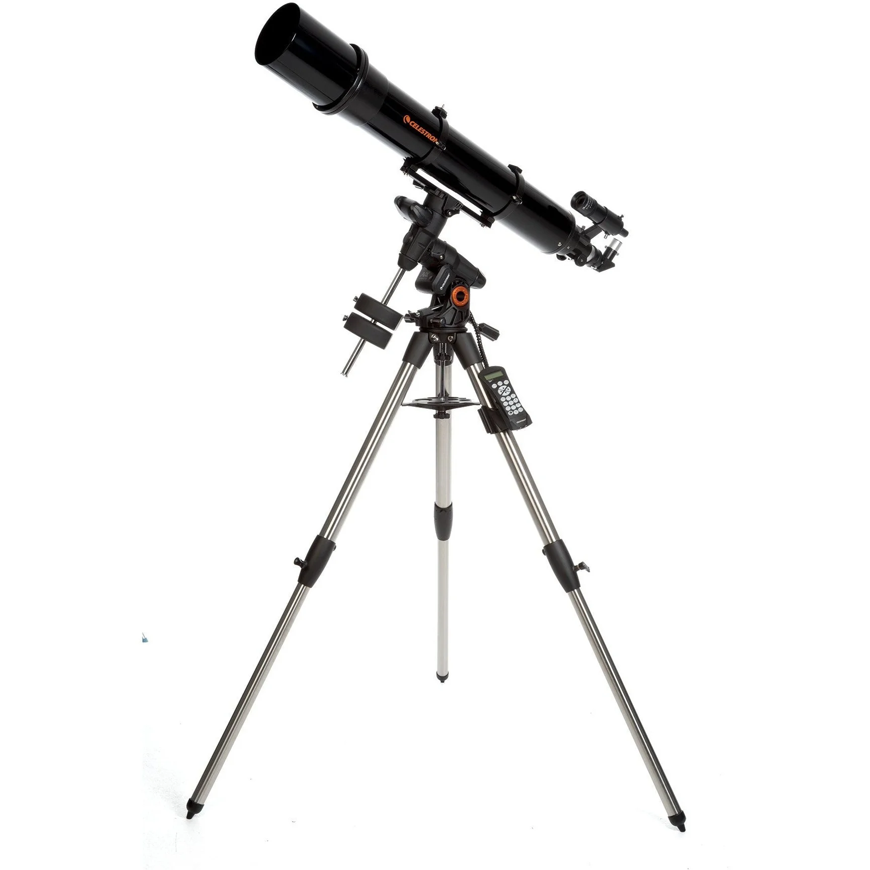 The Advanced VX is the smallest of Celestron’s German equatorial mounts. The computerized GoTo capability automatically tracks objects as they move across the night sky. The Advanced VX mount includes ports for a hand control, an autoguider, and 2 AUX ports for optional accessories. The NexStar+ hand control gives you instant access to all the functions your mount has to offer. With automatic slewing and menu descriptions, any level of astronomer can master this mount in just a few observing sessions. The Advanced VX also has an impressive tripod for its class with a 2” diameter steel tripod legs providing an extra-wide stance for improved stability.